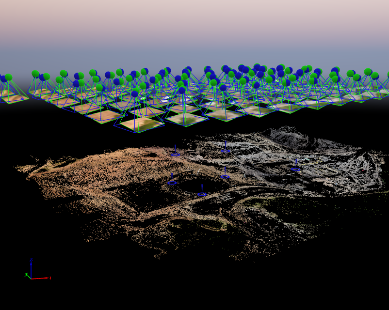 After the processing, we then added the GCPs to the program. In order to do this, we had to let the Pix4D know which were X values and which were Y values and what the elevation value was. It is important to select the correct values otherwise the final product will be inaccurate. From the figures below, it is very obvious how significantly the final product was effected as the elevation changed quite a bit. In the figures below, the blue points are the original result and the green points represent the current elevation that has been corrected due to the inclusion of GCPs.